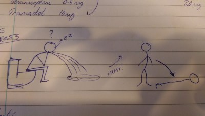 He’s now sat astride the porcelain throne, fast asleep. He tried to poo but the straining made him tired, and he’d long since given up trying to urinate. A warm aromatic pool of vomit laps gently around his toes and when he does finally wake up, he has absolutely no idea where he was or why.