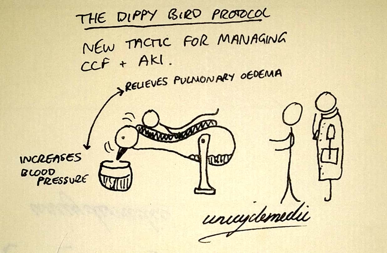 If a patient has low blood pressure but also has heart failure, you have to try and improve their cardiac output without fluid overloading them. You could rock them back and forth, but a better bet is to fold them them in half. Lift the head and the feet of the bed so they fold at the waist. This will relieve the fluid stress on the lungs while also improving venous return.
